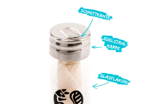 - Praktisch: 30 Meter vegane und plastikfreie Zahnseide für unterwegs und zu Hause – im handlichen und stylischen Glasflakon, der in jede Hosentasche und Handtasche passt.