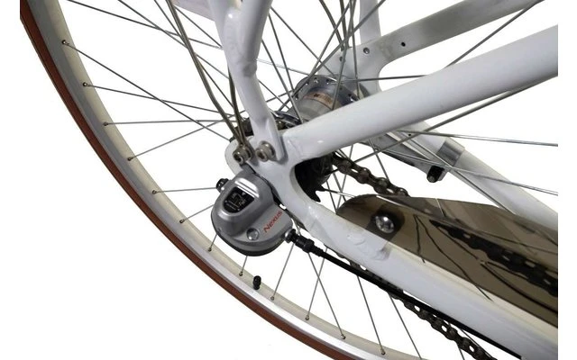 Ein City-Bike, das durch seine Fahreigenschaften und sein Design überzeugt. Der leistungsstarke 36 V / 10 Ah Akku ist leicht zugänglich unterhalb des Gepäckträgers angebracht und muss zum Aufladen nicht herausgenommen werden. Das Ladekabel kann dazu einfach an den Ladeport angeschlossen werden. Der leichte Alurahmen, die leichtgängige 3-Gang Shimano Nabenschaltung und die Fahrunterstützung durch den bürstenlosen Elektromotor bereiten ungetrübten Fahrspaß für Jung und Alt.