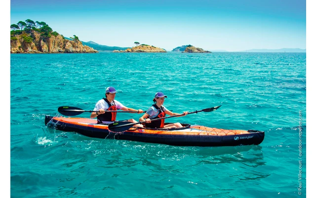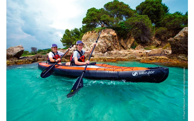 Die Nylonhülle mit einem Boden aus gewebeverstärktem Material bietet zusätzliche hohe Steifigkeit und Schutz. Weitere Ausstattungsmerkmale: verstellbarer, aufblasbarer Sitz mit Rückenlehne, ABS-Platten in Bug und Heck zur Formverstärkung, angeschweißte Spurprofile. Inkl. Tragetasche, Easy Inflation Manometer sowie Spritzdecke für 1 und 2 Personen.